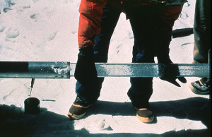 Le carote sono cilindri del diametro di 8-10 centimetri lunghi fino a 3 metri. Vengono estratte da speciali macchine perforatrici da tutti i ghiacciai del mondo, in una sequenza dall’alto al basso, verso le profondità del ghiacciaio.