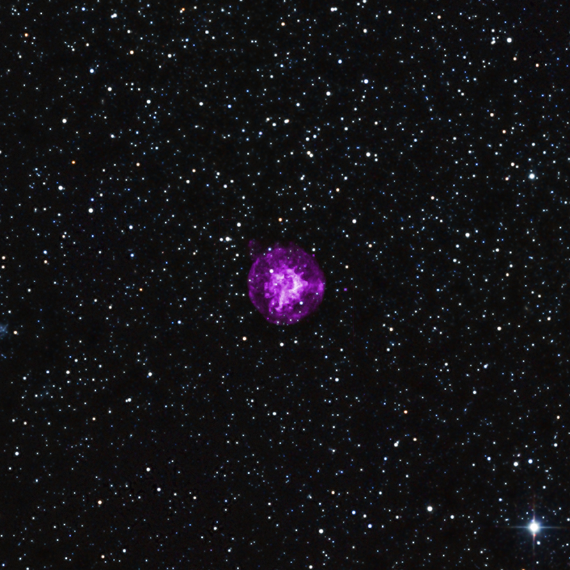 G266.2 – 1.2 : G266.2 – 1.2 è stato prodotto dall’esplosione di una stella massiccia nella galassia della Via Lattea. Una osservazione di Chandra di questo resto di supernova rivela la presenza di particelle ad altissima energia prodotta come onda d’urto di questa esplosione che si espande nello spazio interstellare. In questa immagine, i raggi X di Chandra (viola) sono stati combinati con i dati ottici dal Digitized Sky Survey (rosso, verde e blu).